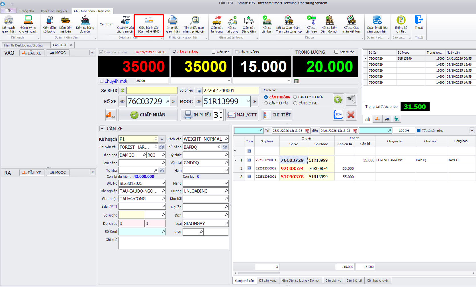 GN Giao nhận trạm cân > Điều hành cân(Cam AI + GMD)