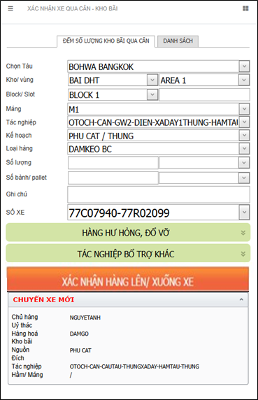 6.4.1 KIỂM ĐẾM HÀNG QUA CÂN NHẬP XUẤT KHO BÃI