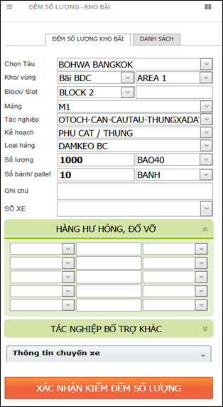 Mục đích: Sử dụng điện thoại, máy tính bảng xác nhận hàng nhập xuất kho bãi từ tàu hoặc từ cổng